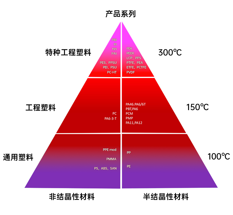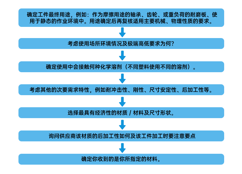 工程塑料选用的目的:使用寿命增长,减低对应零件的磨损,取代金属适用于恶劣的环境、降低维修、更换成本、降低初期原型制作费用。减少衡力消耗、降低噪音、水平吸收衡击能、震动能、提升整体生产设备速度、省却定期润滑次数。